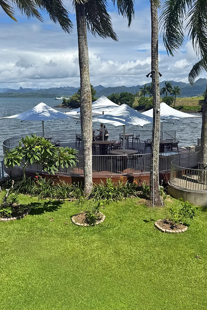 The Holiday Inn Suva Umbrellas are a well-earned refresh to the resort’s sunny poolside and outdoor dining areas. In January 2024, seven bright white Centra CTS43 Architectural Umbrellas were installed across the resort grounds, replacing the MakMax umbrellas that had served the property for an impressive 21 years.